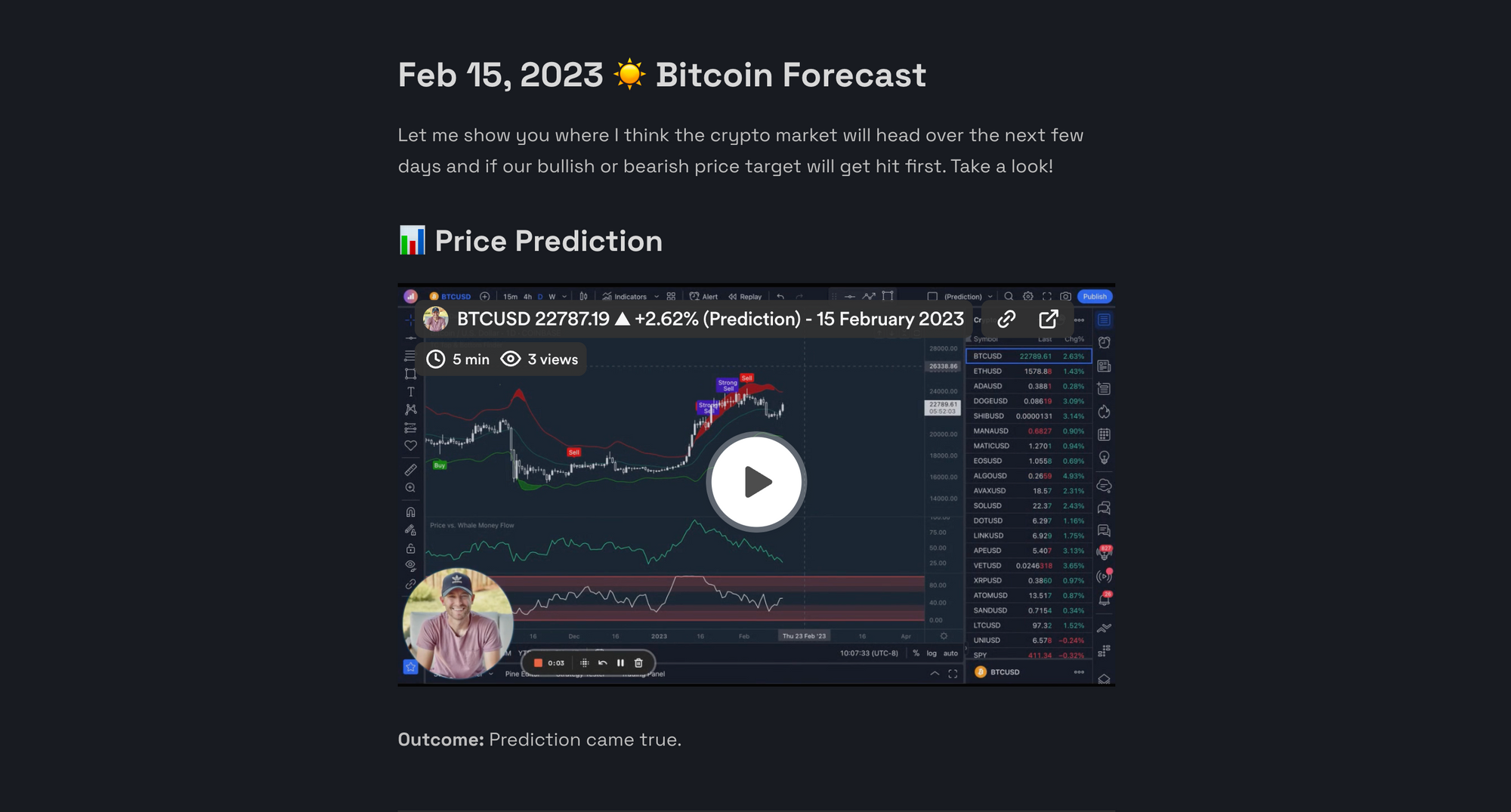 Travis just launched a new members-only access page on the website called Future Forecast where you will be able to see him call out trade opportunities, price predictions, and share where he thinks the market will be heading during the week. You will be notified via telegram and email of every new Future Forecast video that comes out!